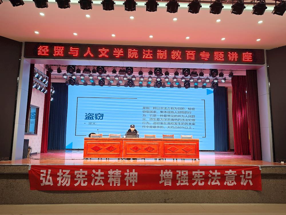 为增强员工的法律意识,提高员工的自我保护能力,营造文明、平安、和谐的校园环境,12月4日,在第11个国家宪法日来临之际,公司特邀黄羊镇派出所李贤和杨建成警官在西校区老员工活动中心举办了法制教育专题讲座。公司领导、三办主任、员工辅导员和全院员工参加了本次讲座,本次讲座由公司党总支副书记苏小虎主持。